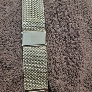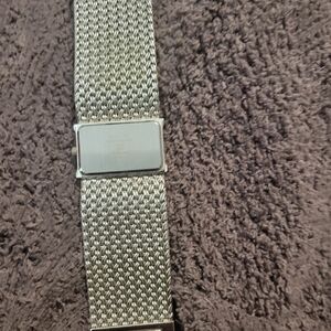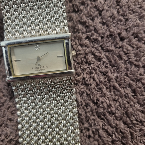 Silver Anne Klein watch with diamond on the facing. Used but perfect condition. if there's any signs of wear, that's expected with used items. Works fine but need a battery. Took a couple links out and I have the extra links.