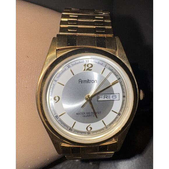 -WATCH MEN Armitron Gold Stainless Steel W/Day Date Quartz