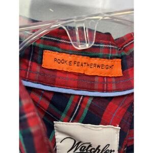 Men's medium red plaid WATCHLER Premium Goods button front shirt