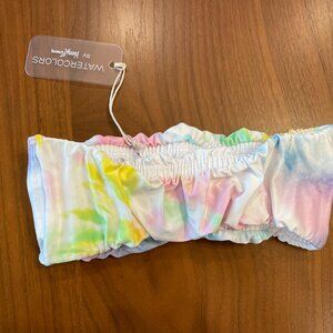 Bandeau style strapless bikini top that won't fall down. Malibu tie dye print. XS great for small chested petite gals. NWT.