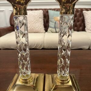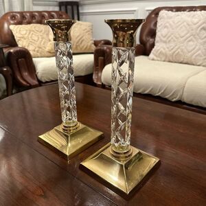 WATERFORD CRYSTAL Cambridge Candle Holders with Brass Base for Holiday Glamour, Home decor, wedding gift — Just lovely!! will brighten up any room of the house!