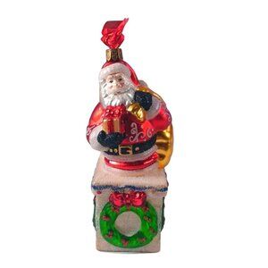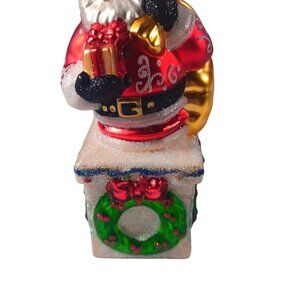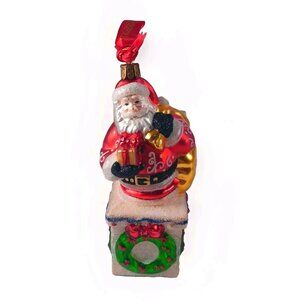Vintage Waterford Christmas ornament featuring a charming Santa Jack in the Box design. Perfect for holiday decorations or as an heirloom piece.