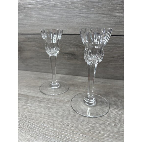 WATERFORD Crystal MARQUIS PALLADIA Taper CANDLESTICKS Rosette Cuts 6”