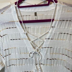 WAVE ZONE Beach Pool CoverUp White Lace-Up Tunic Top Sz L