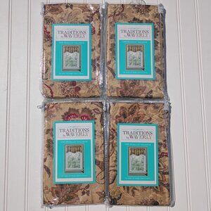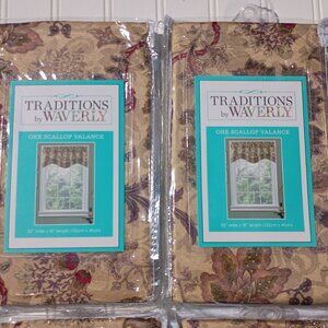 WAVERLY Navarra Antique Curtain Valances SET OF 4 Scalloped Valance Gold Floral