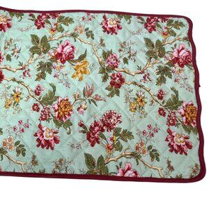 WAVERLY Table Runner Mint Green Red Floral Reversible 34" Long Cotton Quilted
