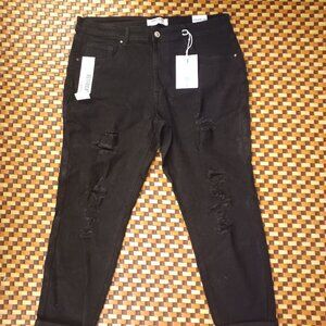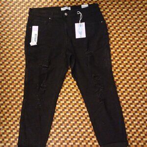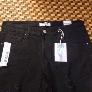 WAX JEANS Boyfriend Stretch Black Distressed Denim Jeans Size 16 NWT