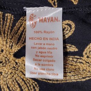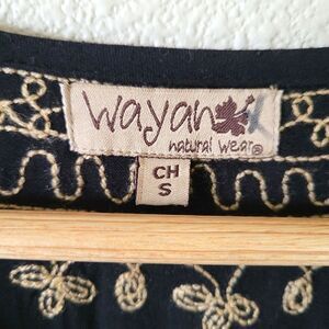 WAYAN NATURAL WEAR Black Tunic Dress Size S Floral Embroidered Bell Sleeves