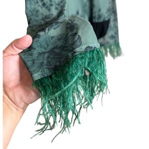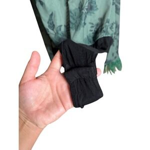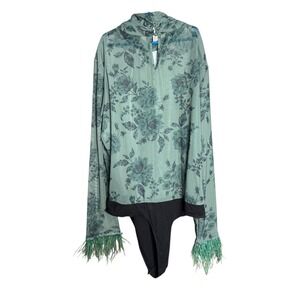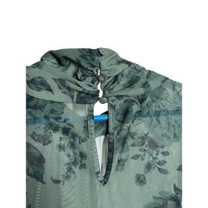 WAYF Anthropologie Mock Neck Mesh Bodysuit Green Floral Large Stretch