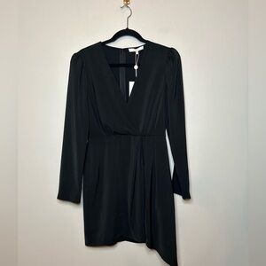 WAYF Banks Plunging Black Asymmetrical Mini Dress Size S