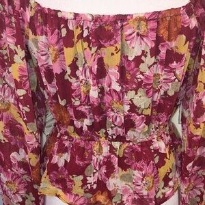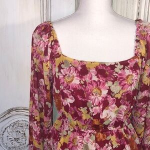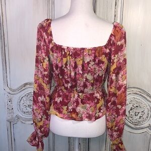 WAYF Beautiful Multi Color Sheer Square Neck Long Puff Sleeve Blouse Size XS
