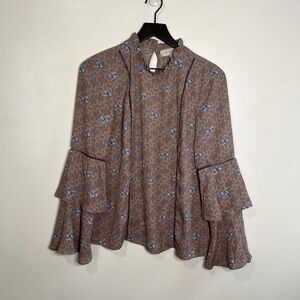 WAYF Bell Sleeve Floral Mock Neck Peasant Blouse