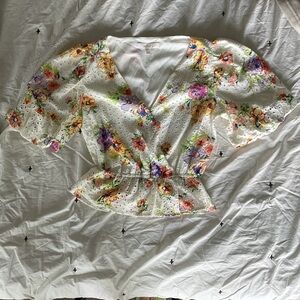 WAYF Bianca Puff Sleeve Floral V-neck Top Shirt ASO Black-ish size XS