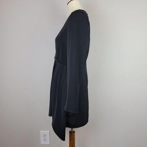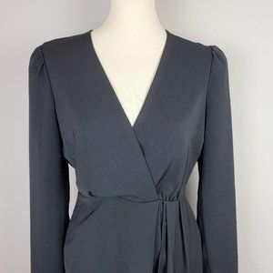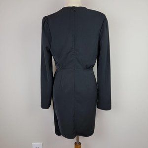 WAYF Black Drape Puff Long Sleeves V-Neck Dress M