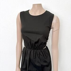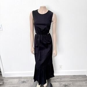 WAYF Sz Large L Black Rae Side Cut Out Waist Ruffle Hem Tiered Maxi Dress Cotton