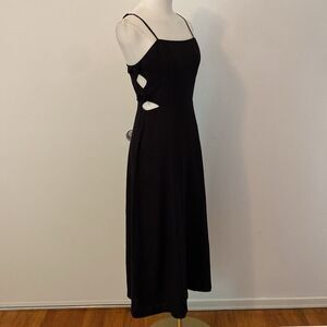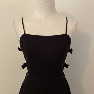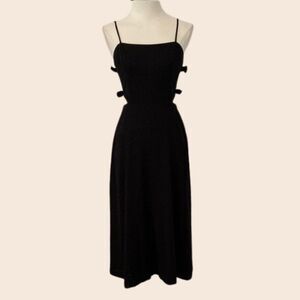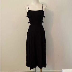 WAYF Black Linen Side Cutout with Bows Fit & Flare Midi Dress Size Small