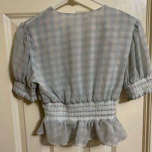 WAYF Blue Puffed Sleeved Smock Blouse
