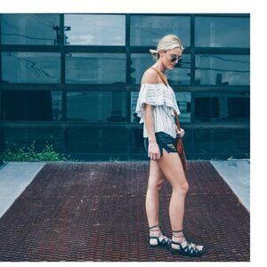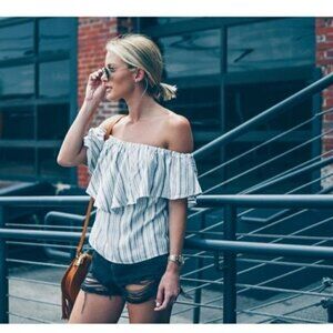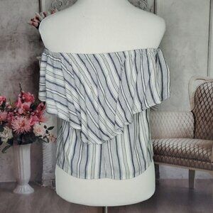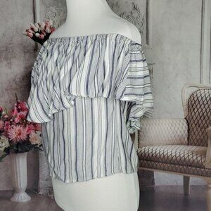 WAYF Blue White Pullover Striped Off the Shoulder Blouse Top Size XS Made in USA