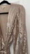 Like new, very goods quality sequins. The color of the dresss is very light gold/ champagne