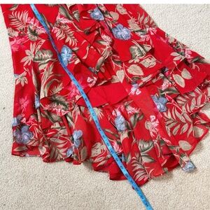 WAYF Clara Wrap Dress Botanical Red Print Floral High Low Ruffle Hem Size Medium