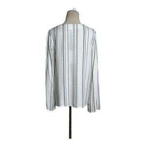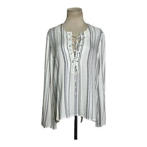 WAYF Cream with Brown Blue Stripes Long Sleeves Lace Up Tunic size Small