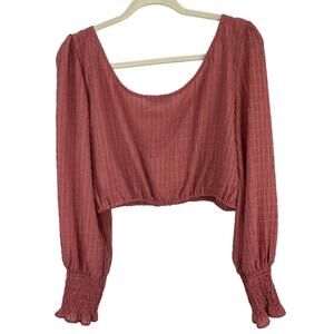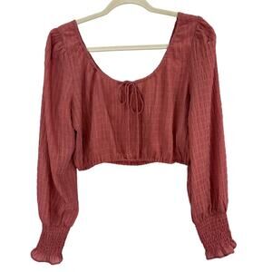 WAYF Cropped Long Sleeve Textured Peasant Blouse – Size Small – Rust Red