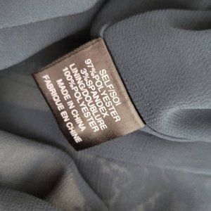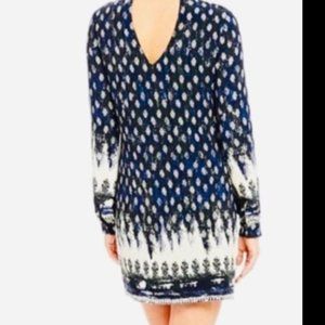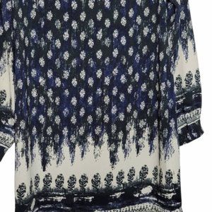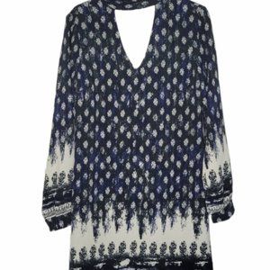 New with tags long sleeve shift dress with beautiful navy and cream pattern and v-neck cutout in front and back. Can easily be dressed up or down!