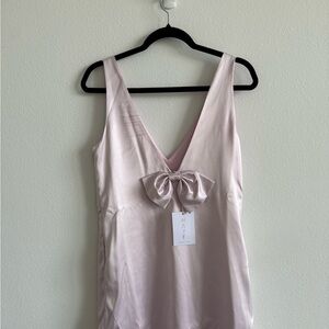 WAYF DRESS Natalie Mini Dress Color Ice Pink Bow detailing in back NWT Size 8