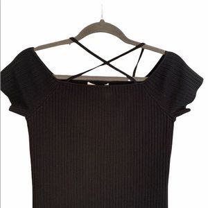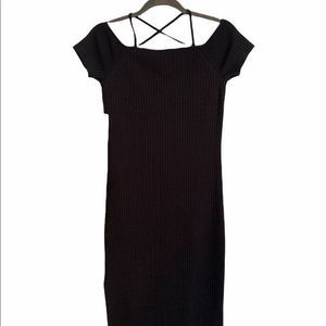 WAYF Deena Off Shoulder Knit Midi Dress in Black