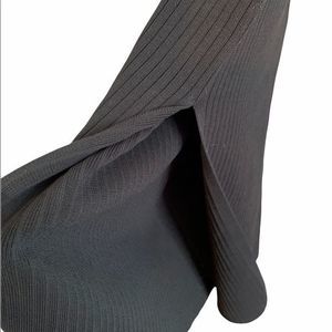 The Deena Off Shoulder Knit Midi Dress will be your perfect accompaniment to dinner and drinks, maintaining class with the most minimal effort. Fits true to size, hugging the body with more flow in the skirt. Off-the-shoulder neckline. Halter straps in front with crisscross design on back. Short sleeves. Left side slit on skirt for added flexibility. Unlined. Solid color, ribbed knit design. Materials: 72% viscose, 20% nylon, 8% polyamide.