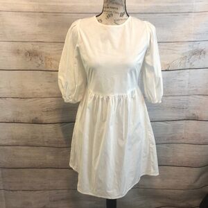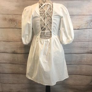 WAYF Dress Lace-Up Back Puff Sleeves Babydoll Mini White Cotton Size Small