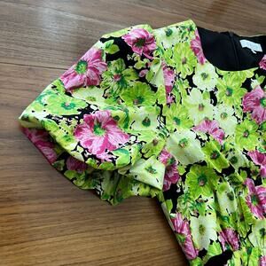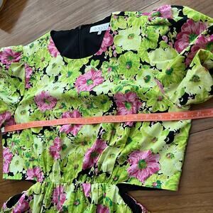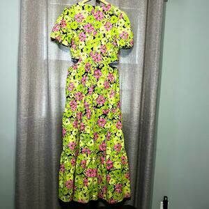 WAYF Dress Size XL Floral Short Sleeve Side Cutout Maxi Lime Fuschia