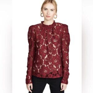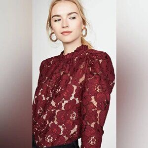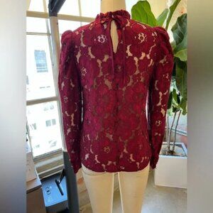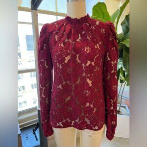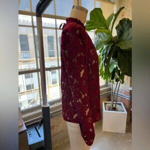 This chic burgundy lace blouse features an intricate floral design. Perfect to transition from the office to a night out. Woven Camisole included. NWT, Size S