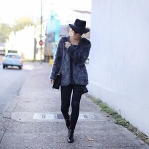 WAYF Faux Fur Dark Gray Coat Jacket Teddy Womens Small Open Front Plush Grey