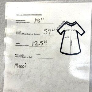 Flat lay measurements: Chest width 18" / Waist 12.5" / Length 57"