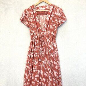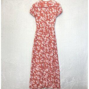 WAYF Dress Womens XS Pink Floral Maxi Short Sleeve V Neck Boho Slit Made USA