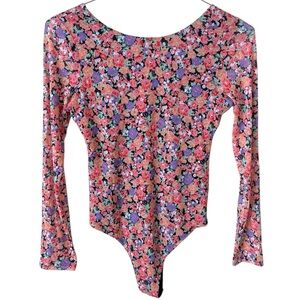 WAYF Floral Mesh Long Sleeve Bodysuit size Small