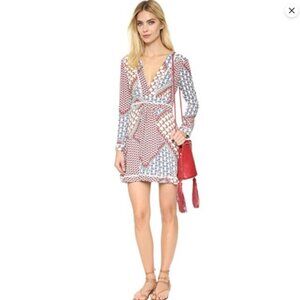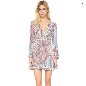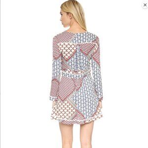WAYF Floral Patchwork Print Dress – V-Neck Long Sleeve –Small,