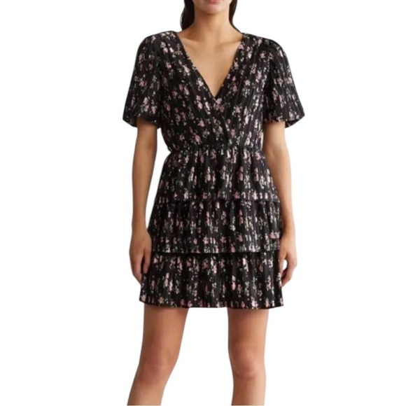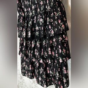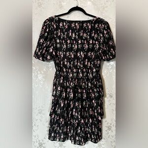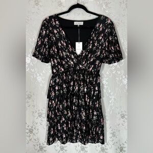 Tags / Keywords: WAYF floral dress, black pink dress, tiered mini dress, spring floral, romantic style, NWT dress, wedding guest outfit, ruffle hem dress