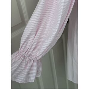 Pretty pink and white striped WAYF Freeman Off The Shoulder Mini Dress or top in size M. Crisp cool fabric is perfect for spring and summer. Great top for Easter. Ruffle collar and sleeves. EUC!