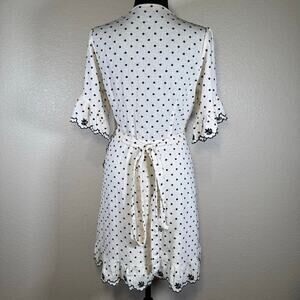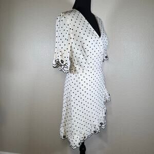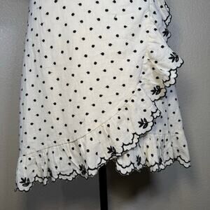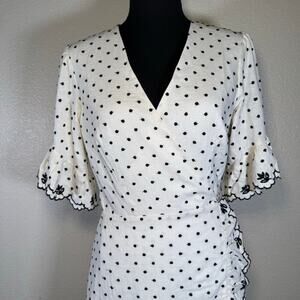WAYF Hatty Ruffle Wrap Mini Dress Ivory polka dot embroidery Women Size unknown