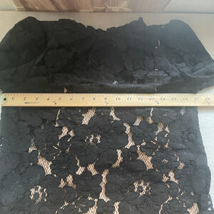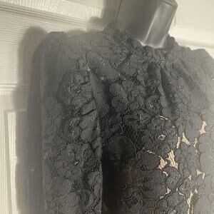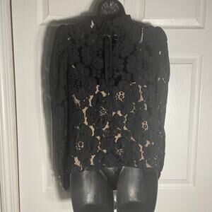 WAYF Lace Blouse Womens Small Black Floral Sheer Attached Tan Cami Mock Neck Top