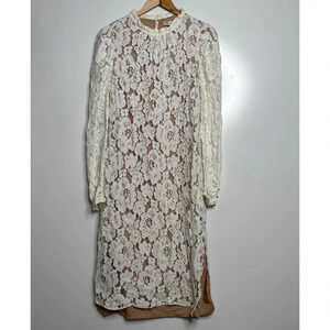 EUC. Worn once. As seen in the photos the lining hangs a bit longer at the hem. It came this way. It can be pinned up if you prefer to not see the nude lining.