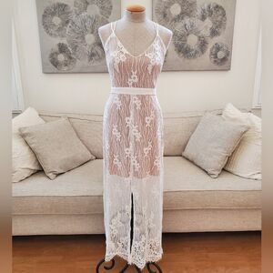 WAYF | Lace Semi Sheer Maxi Dress - size Small in White.