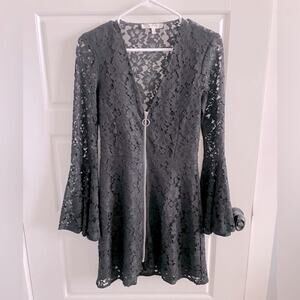 WAYF Black Lace Zipper Dress | Bell Sleeves | XS