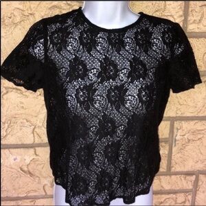 WAYF Lace floral Top Blouse lace black short sleeve retro Size XS Goth