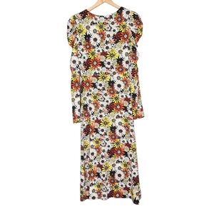 WAYF Lalia Puff Sleeve Slit Front Dress Size Small Midi