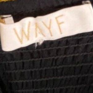 WAYF Leonie dress, black midi, puff sleeve dress, corset bodice, square neckline, smocked back, estimated size small, missing tag, black rayon dress, elegant midi, fitted bodice, date night dress, cocktail dress, boutique style, timeless black, semi-formal, feminine classic.