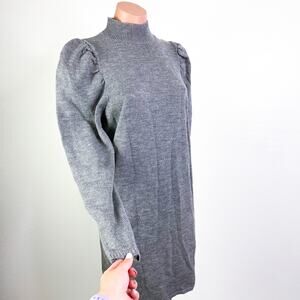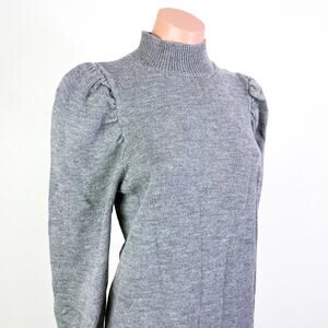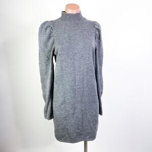 WAYF Lola Puff Sleeve Mock Neck Sweater Dress Gray size Medium NWOT