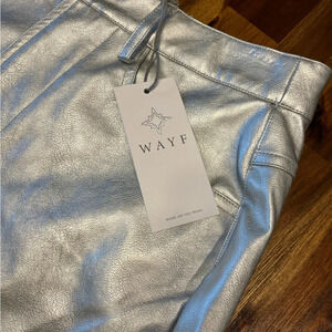 WAYF Luxury Metallic Silver High Rise Vegan Leather Pants Size Small